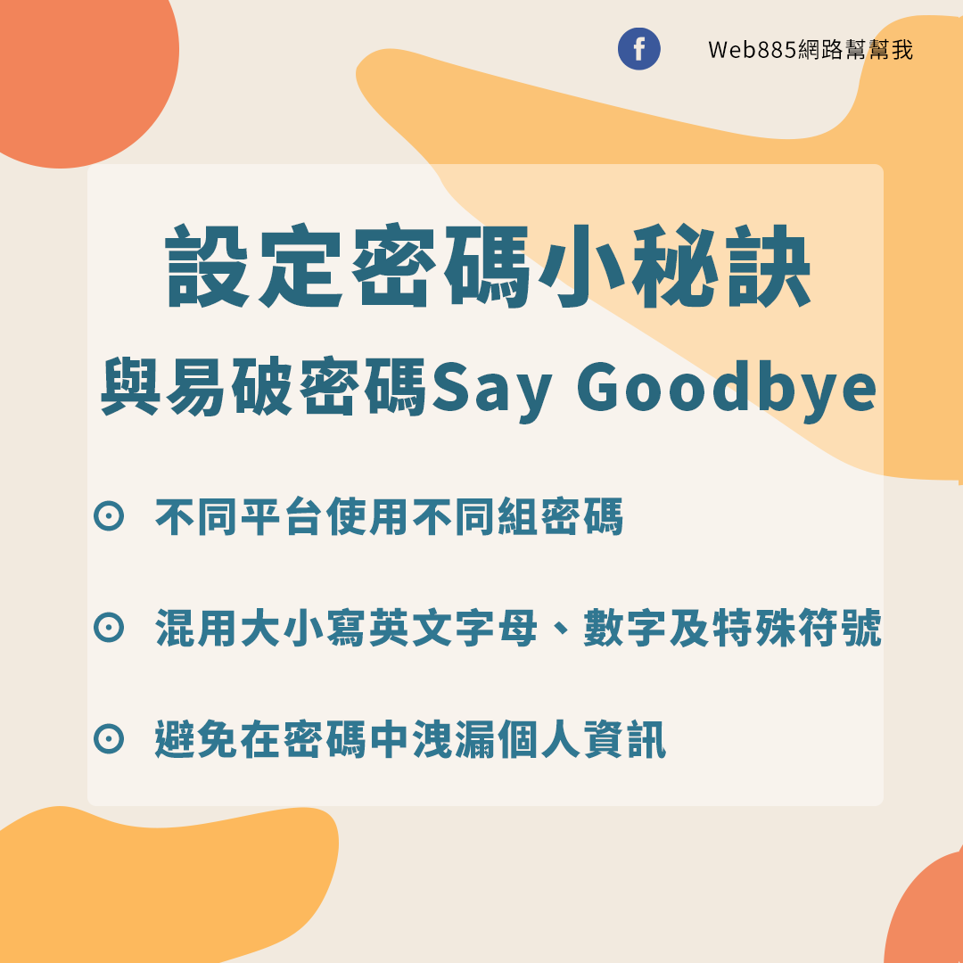 最後切記 : 切勿與別人共用密碼、切勿隨意與人分享密碼‼
